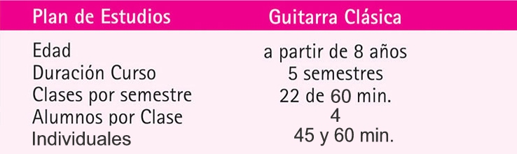 A través de la guitarra el alumno adquiere un panorama musical sumamente amplio y así como su habilidad de interpretación va creciendo gradualmente, también aumenta su destreza técnica. El repertorio existente para éste instrumento es sumamente extenso, y gracias a ello, es posible tener al alcance un universo musical para disfrutar a través de la interpretación de la Guitarra.